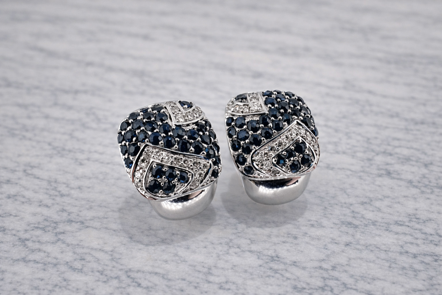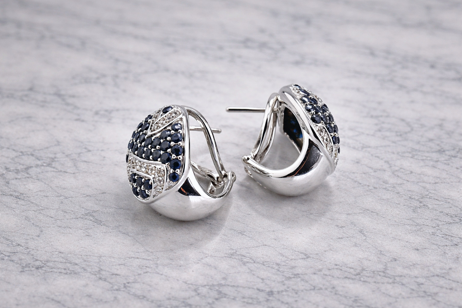 Золотые серьги с природными бриллиантами и сапфирами 0,37 карат