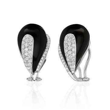Золотые серьги с ониксом и бриллиантами 0,85 карат