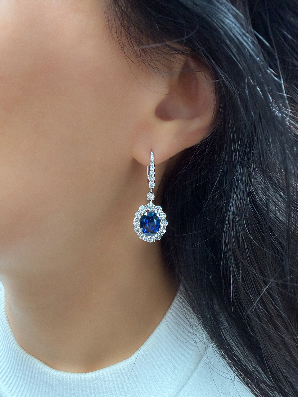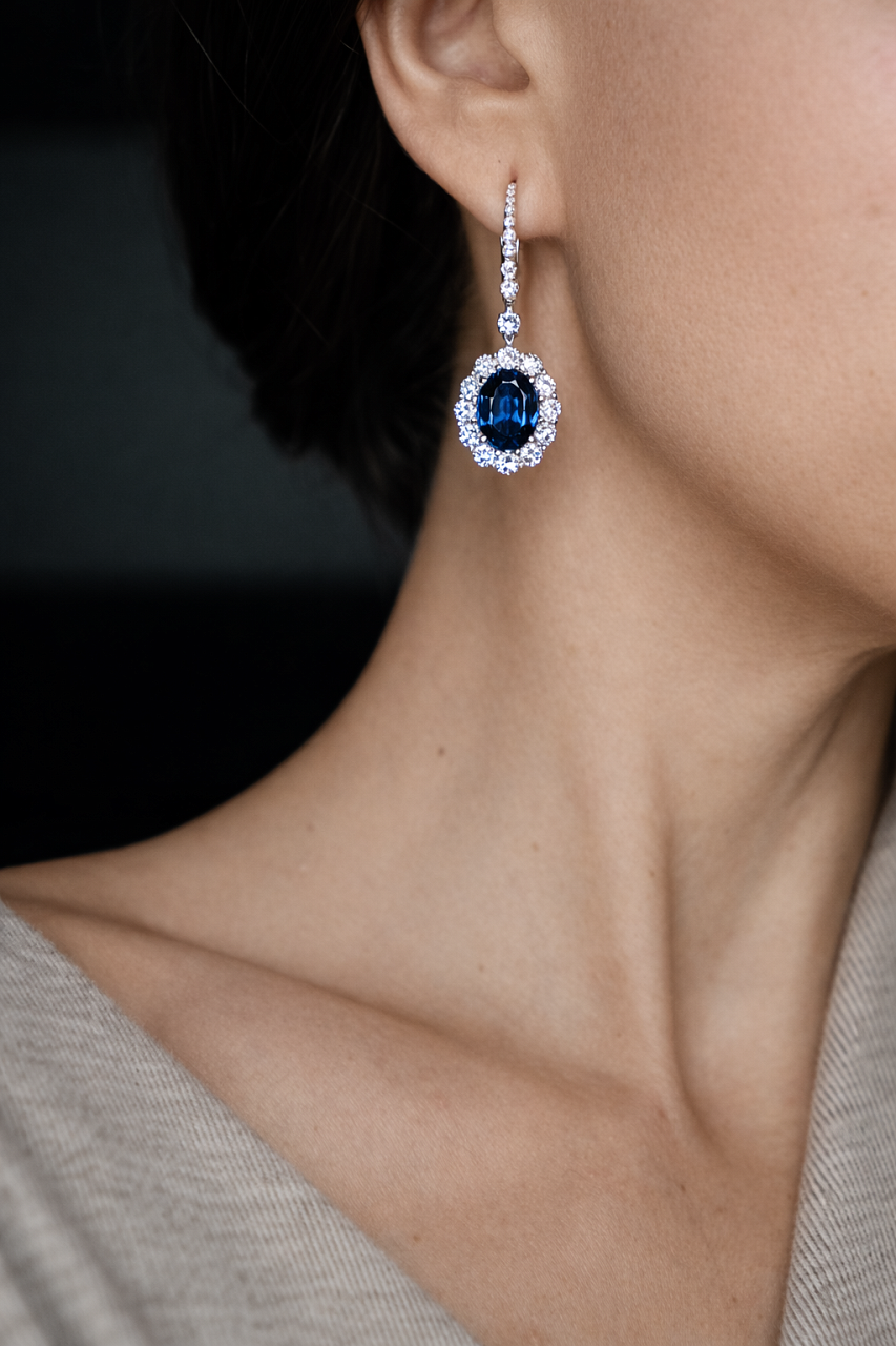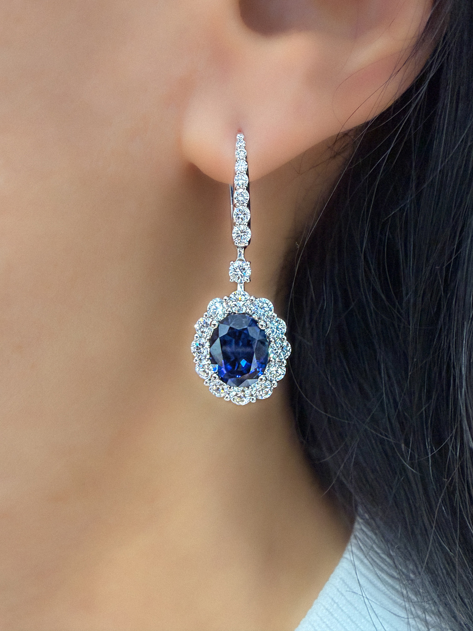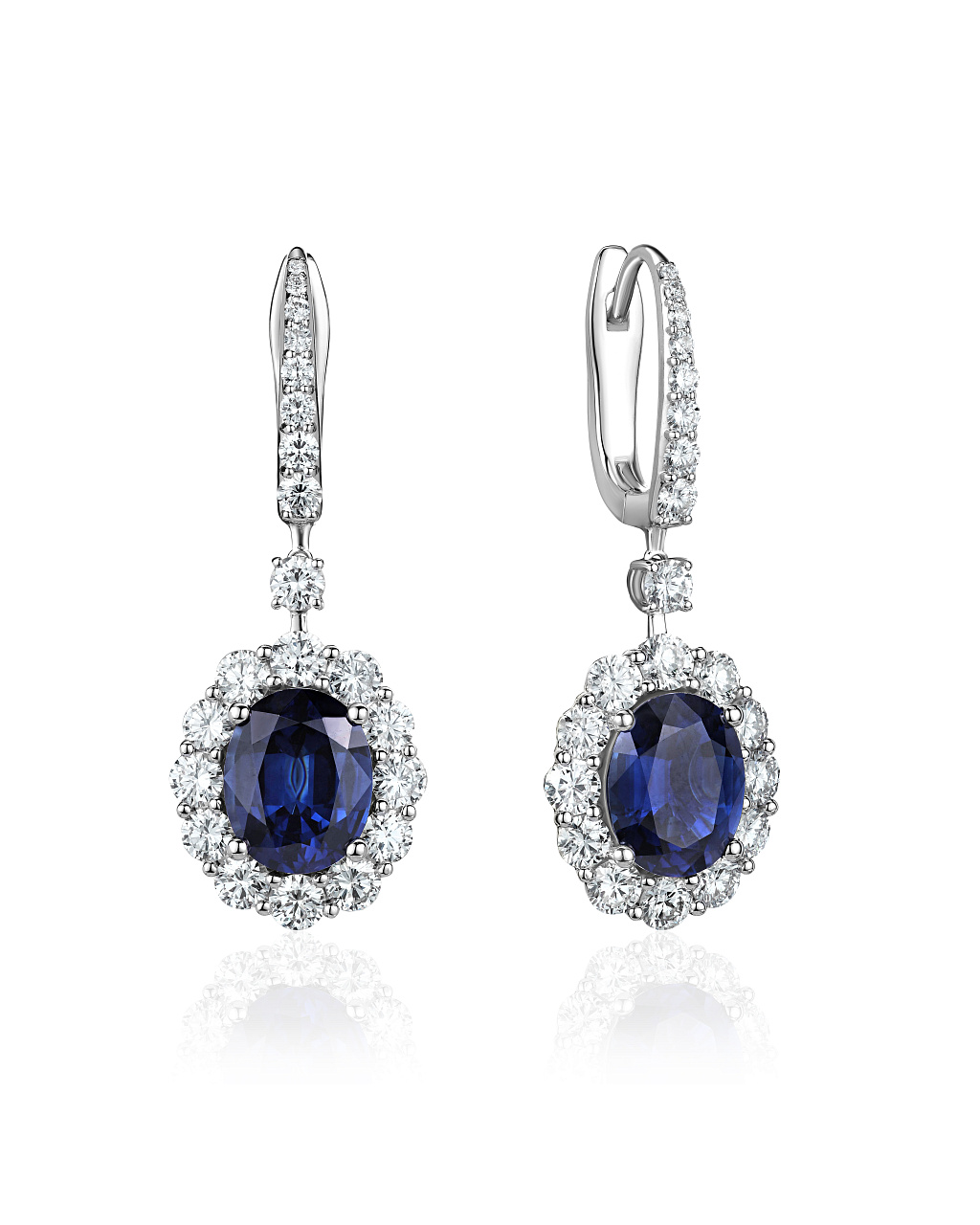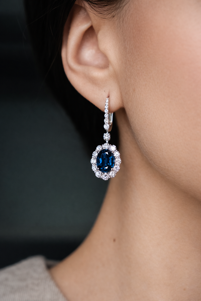 Сапфиры: - 1 шт. огранки "овал" 3,61 ct. (Deep Blue / VS) - 1 шт. огранки "овал" 3,61 ct. (Deep Blue / VS), Бриллианты 42 шт. Кр-57 3,22 ct. (3/3-4)