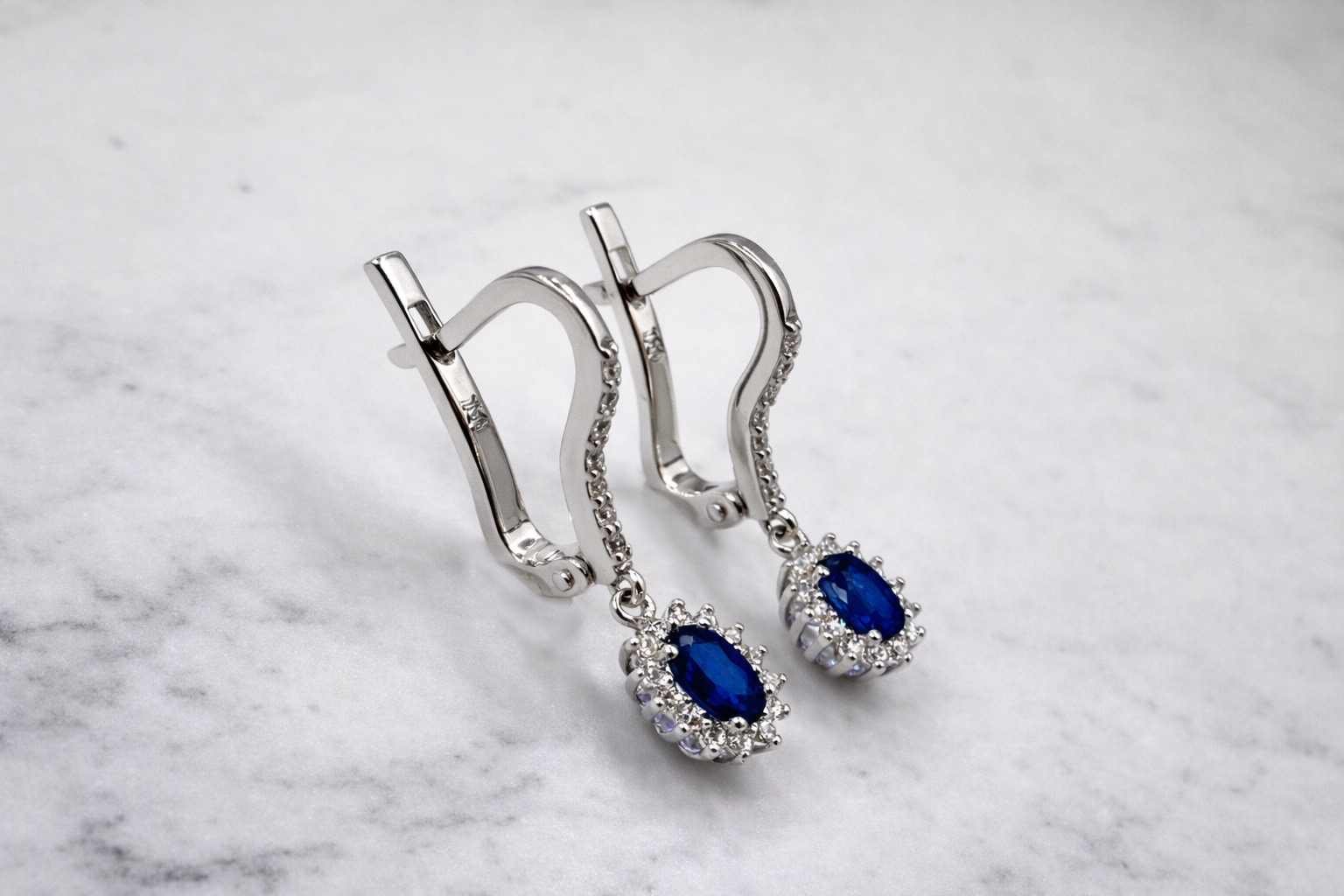 Золотые серьги с сапфирами и бриллиантами 0,22 карат