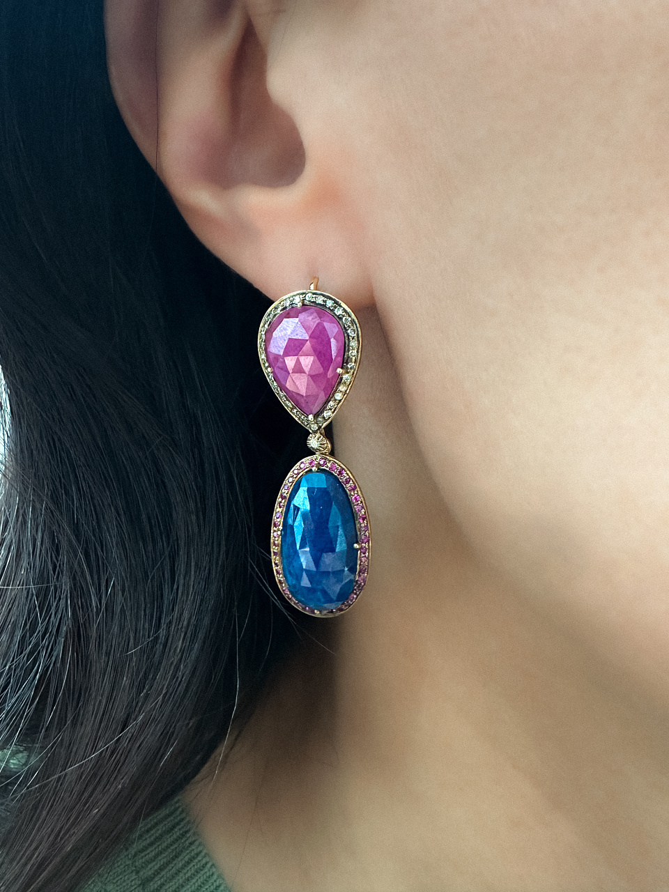 Золотые серьги с сапфирами и бриллиантами 0,36 карат