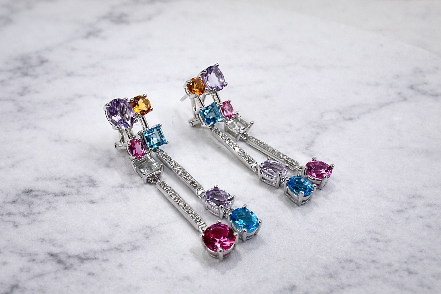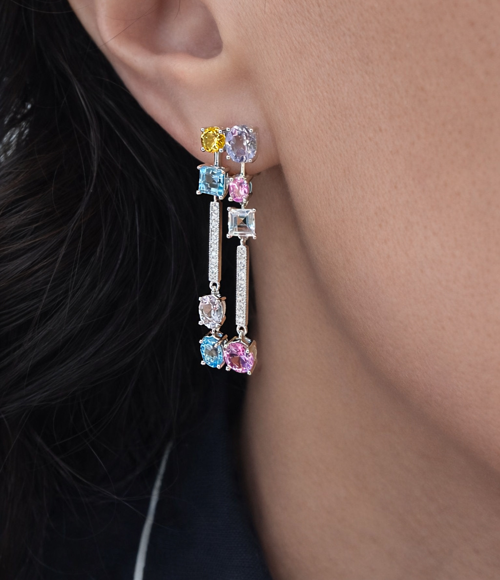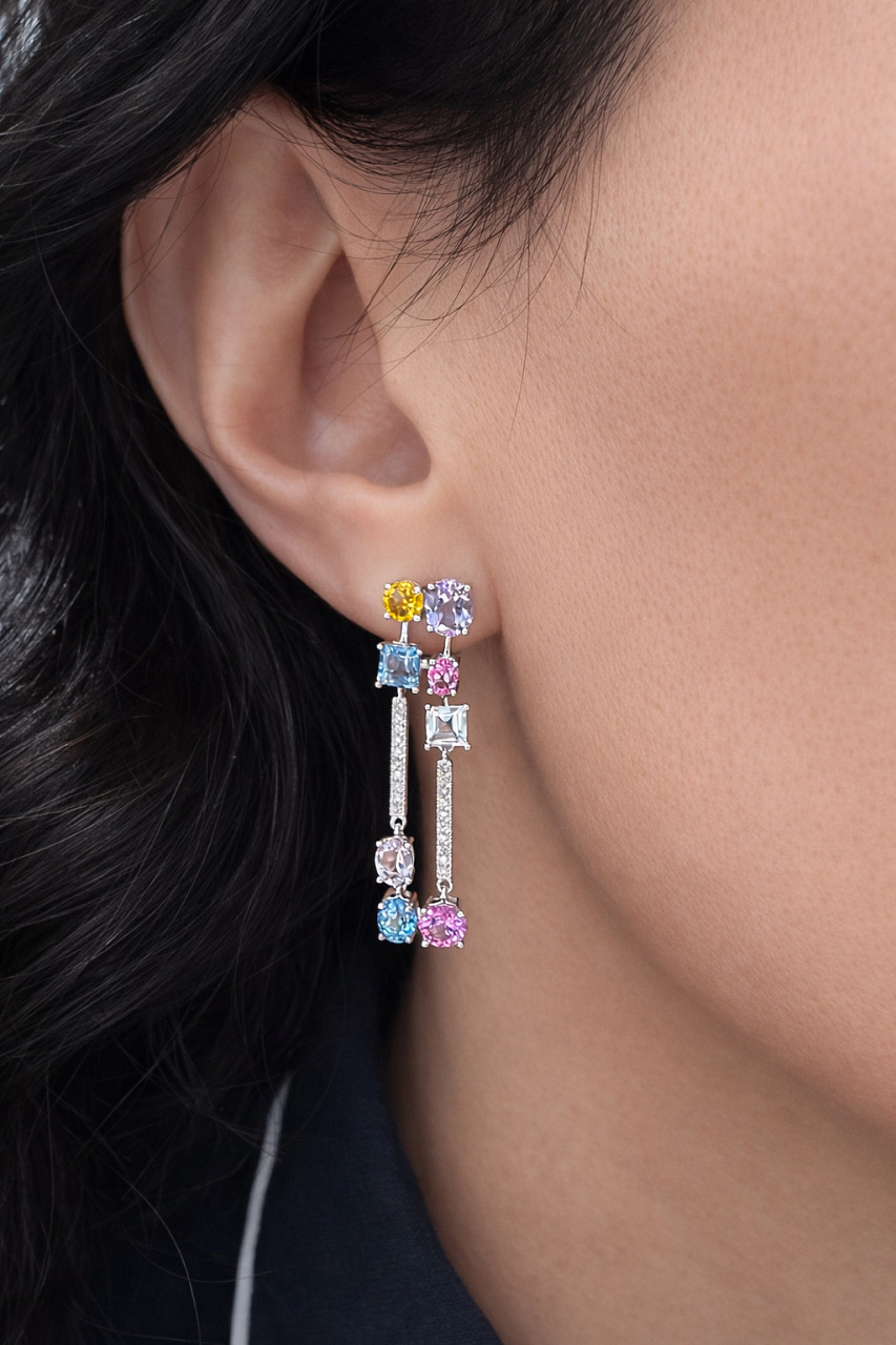 Золотые серьги с топазами, аметистами и бриллиантами