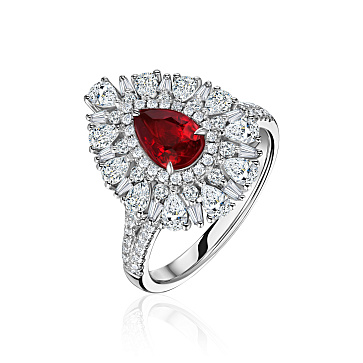 Золотое кольцо с бриллиантами и рубином 1 карат