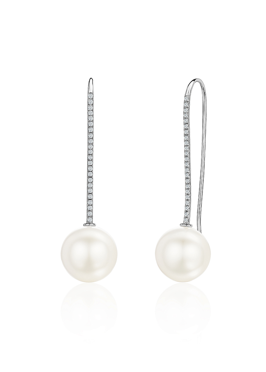 Золотые серьги с жемчугом и бриллиантами 0,24 карат