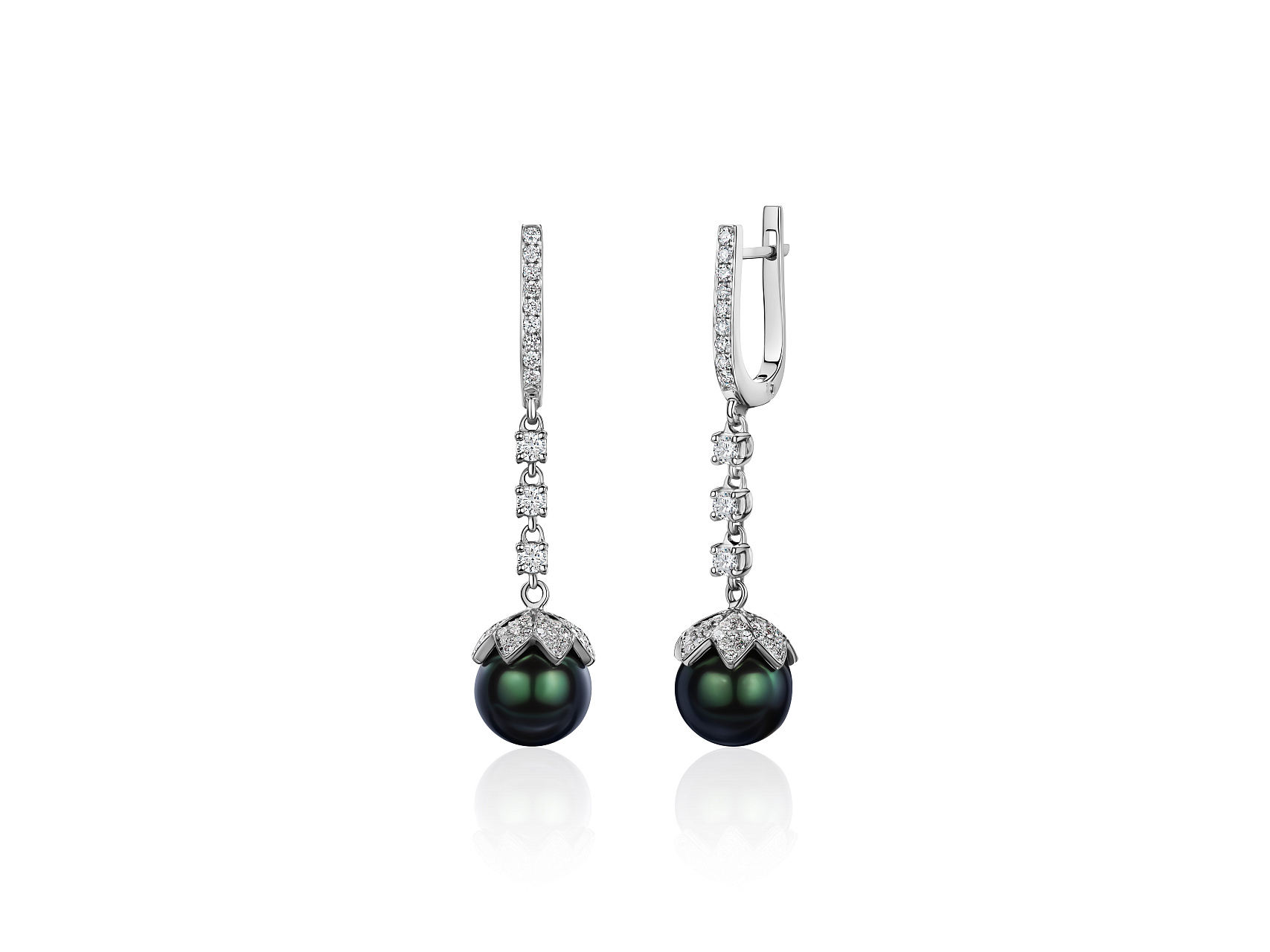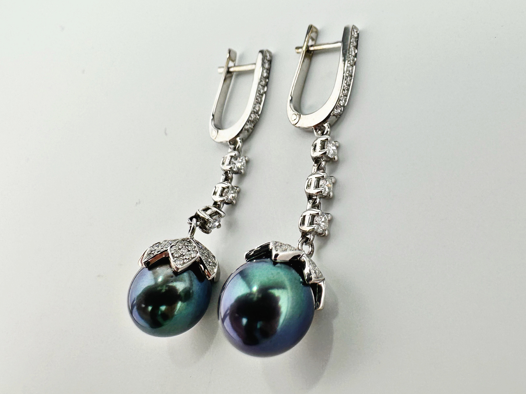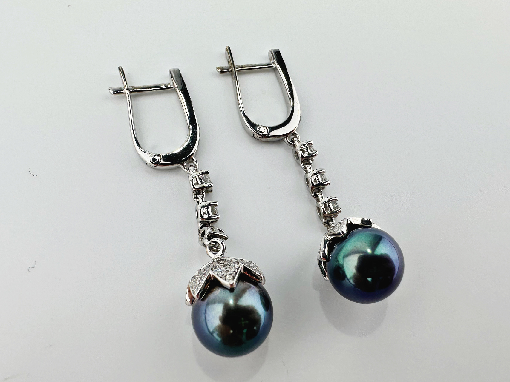 Золотые серьги с жемчугом и бриллиантами 1,25 карат